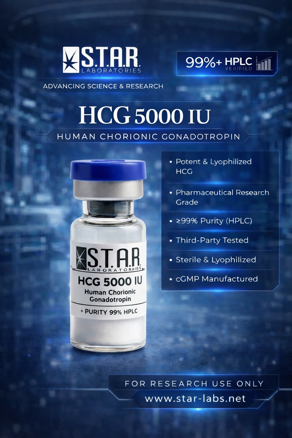 HCG 5000 IU (Human Chorionic Gonadotropin) is a hormone that mimics luteinizing hormone (LH) in the body. It is commonly used in medical and research settings to stimulate hormone production and reproductive function.